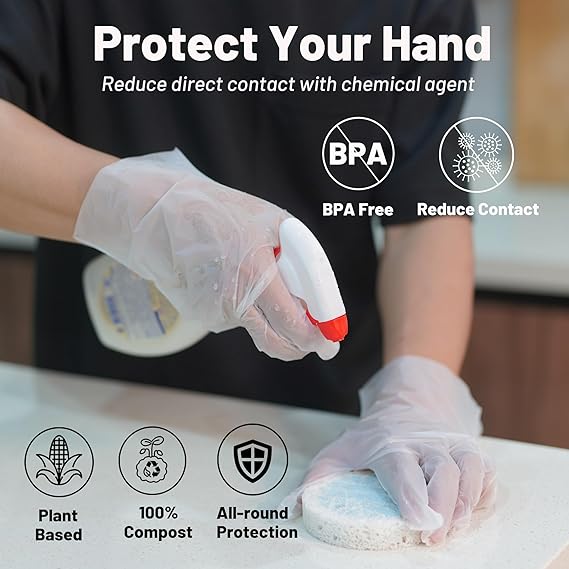 Compostable gloves are environmentally friendly gloves designed to minimize the impact on the environment. Made from biodegradable materials such as PLA and PBAT, they are designed to provide the user with effective personal protection while ensuring that the product can be safely returned to nature after use.