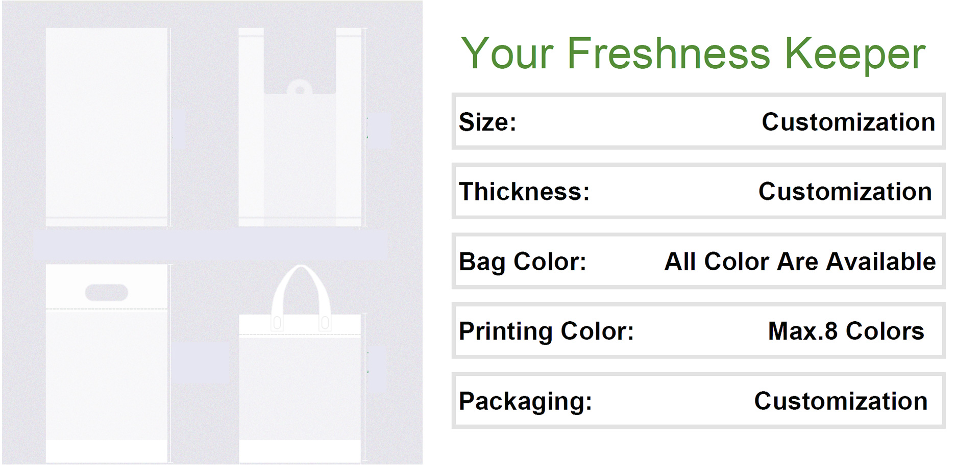 - Color: Natural, white, customizable color or design with brand logo.