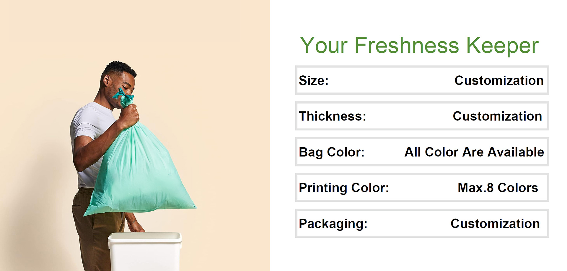 Join the environmental action and start using fully degradable trash can bags. Buy online now or contact us for details on bulk purchasing and customization services.