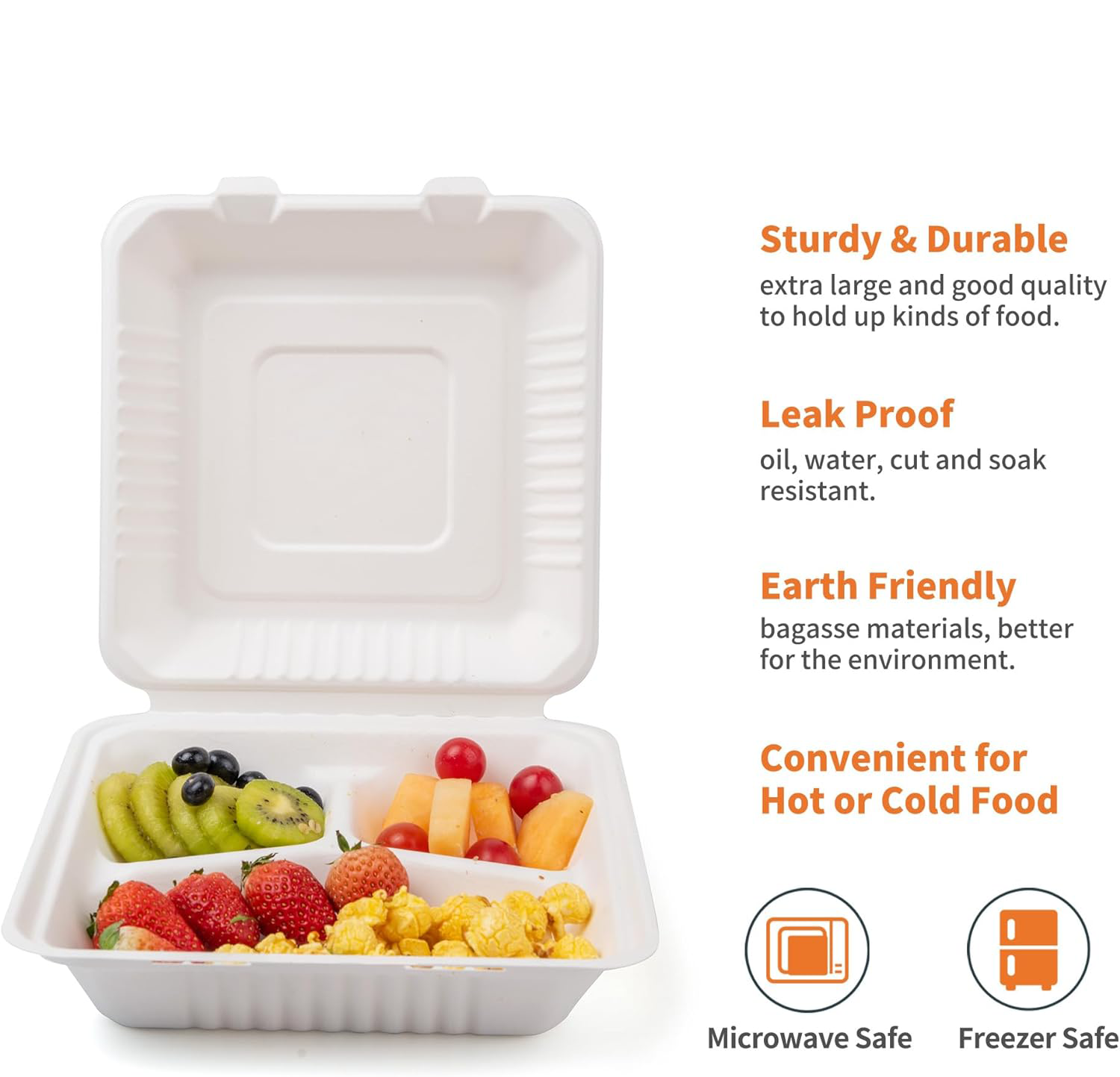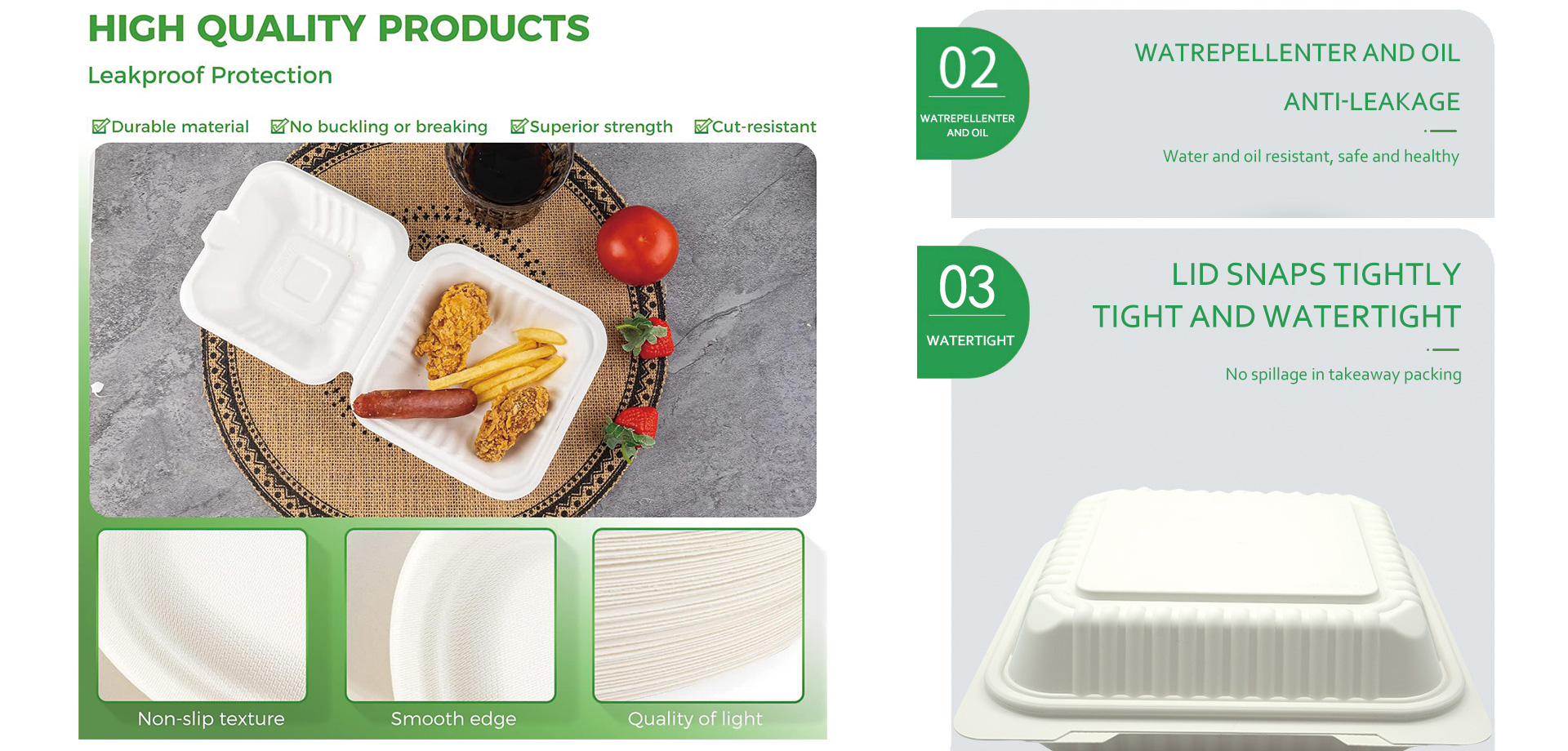 - Biodegradable materials: the use of corn starch and other plant fiber composites ensures that the product breaks down completely under natural conditions.